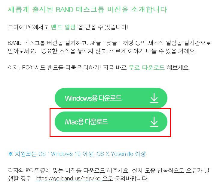 지금 제공되는 경로를 통해 네이버밴드 공식 웹사이트 또는 Mac 환경에서 바로 접속할 수 있으며,